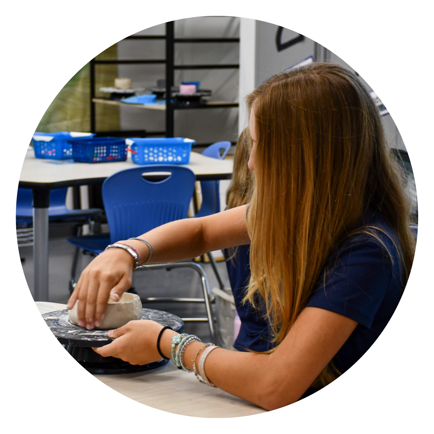 Students explore a wide range of materials, styles, and cultural influences inside our newly build Art Studio that includes a brand new kiln.